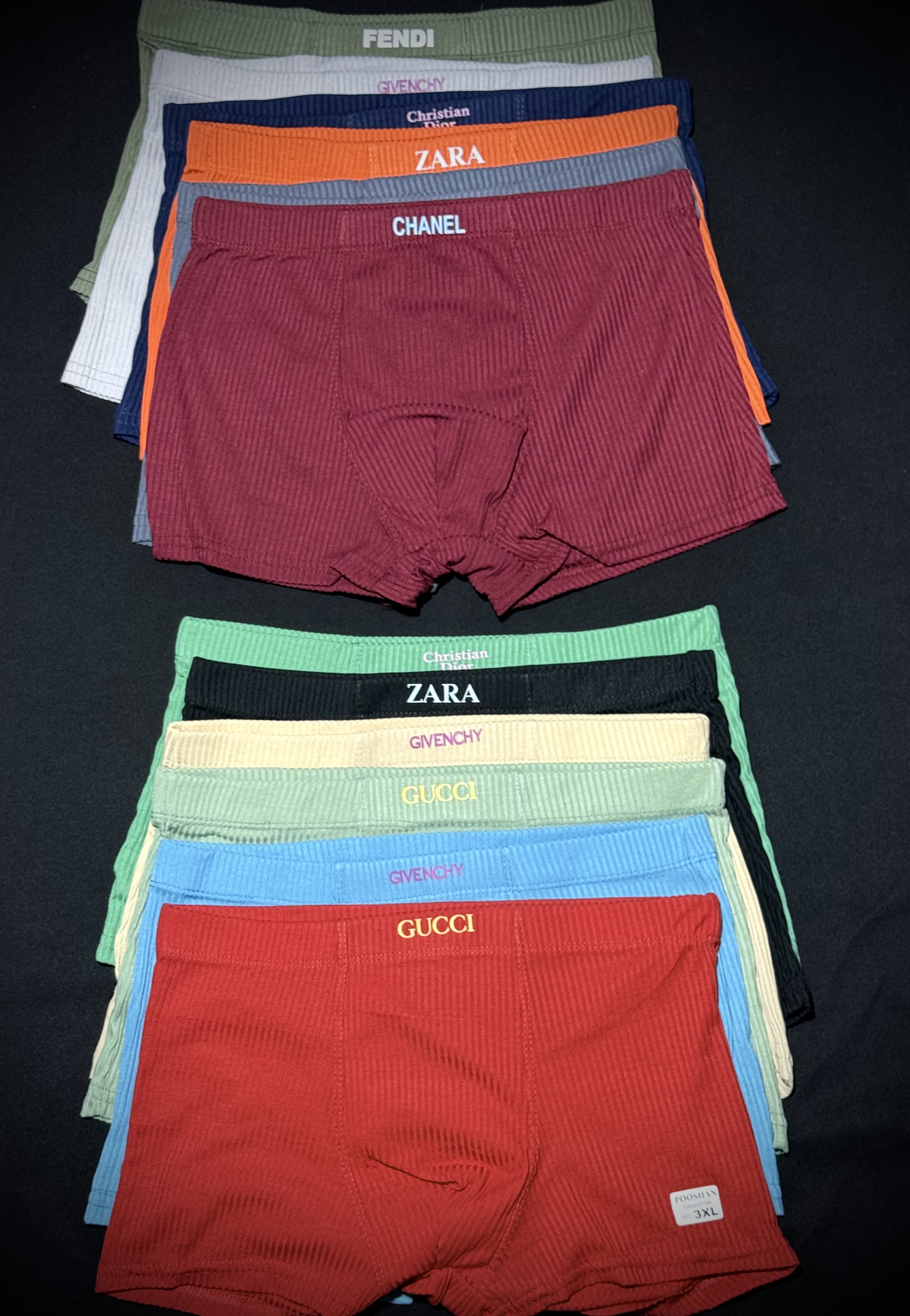 شورت نیم پا پنبه لاکرا کبریتی اعلا در بسته بندی ۱۲ عددی ۱۲ رنگ